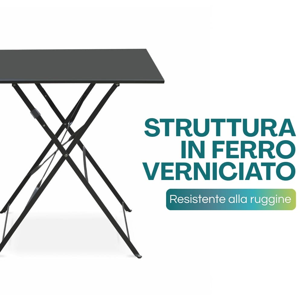 Set tavolo quadrato e 2 sedie in metallo