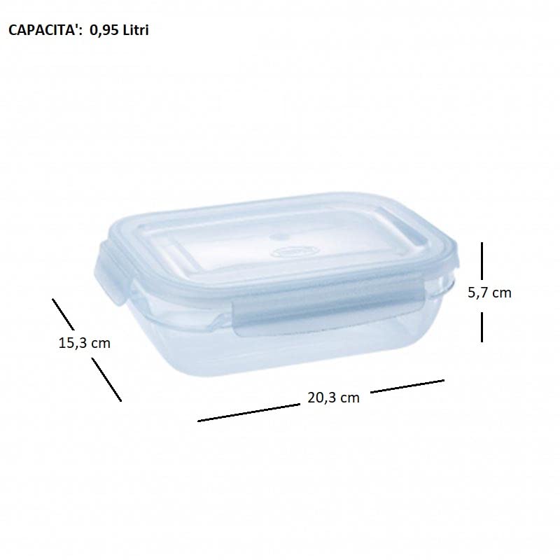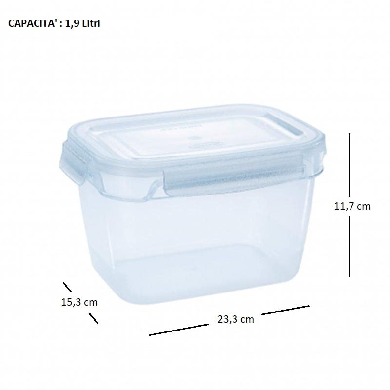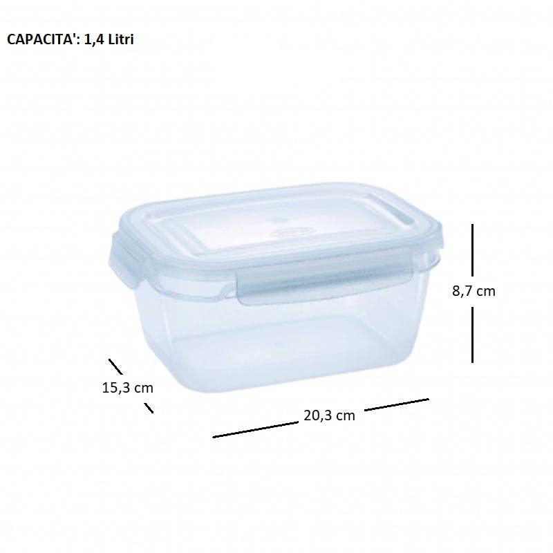 Set da 3 Contenitori alimenti rettangolari con coperchio per cibo cucina 0,95, 1,4 e 1,9 Litri per conservare salumi, frutta secca, biscotti