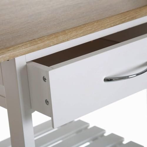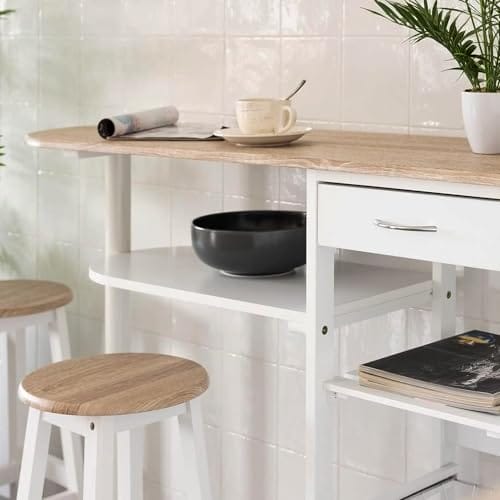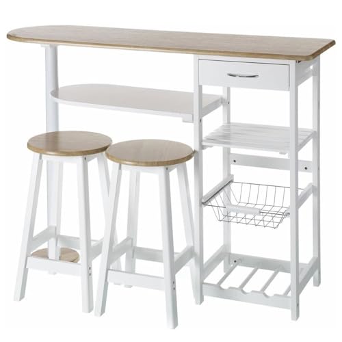 Set tavolo penisola con 2 sgabelli bianco e rovere - Misura 119x38,5x88,5 cm - Penisola cucina con piano in MDF laminato, portabottiglie, cestello, 2 ripiani portaoggetti e 1 cassetto