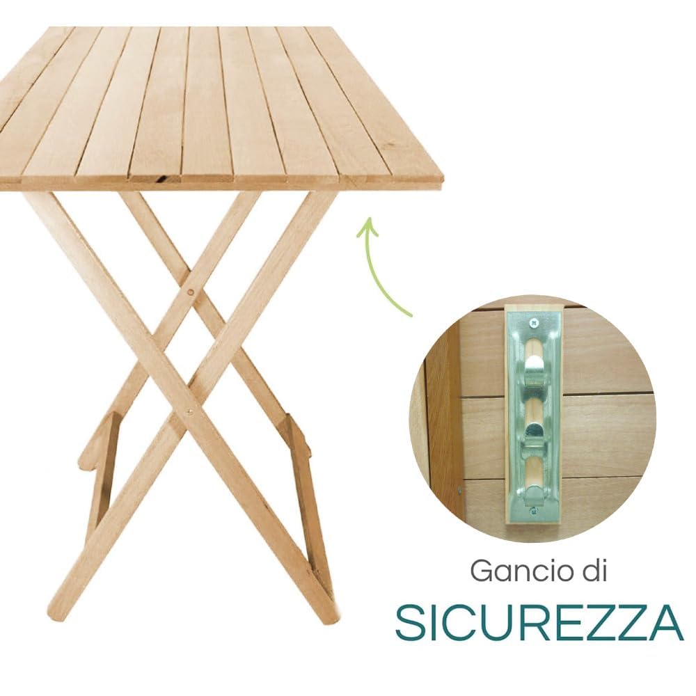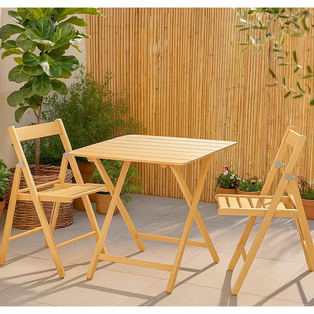 Set pranzo tavolo rettangolare pieghevole e 2 sedie in legno di faggio - Misura Tavolino 80x60x72 cm - sedia richiudibile color naturale