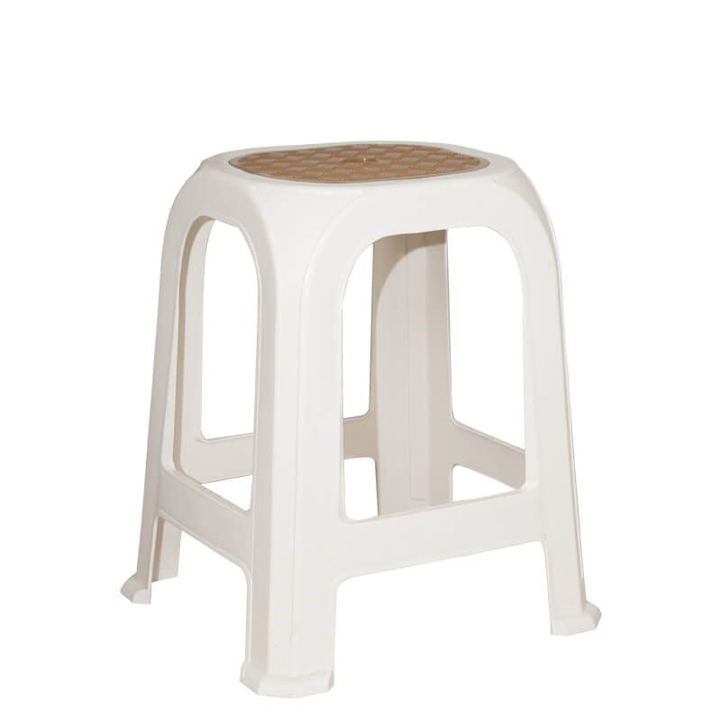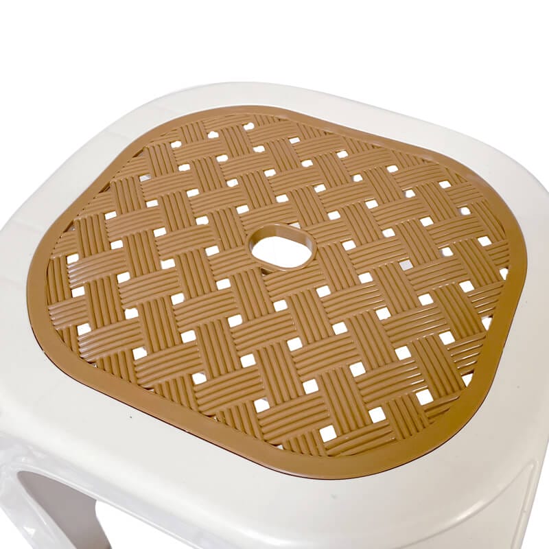 Sgabello bagno in plastica mis. 31x27x46 cm - Sgabellino multiuso da cucina o cameretta per bambini - Bianco e Marrone