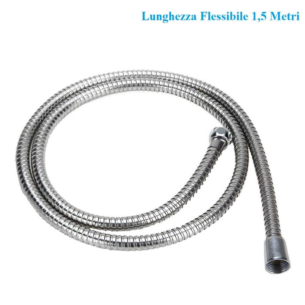 Soffione doccia universale con tubo flessibile - Tubo da 1,5 Metri e diametro 14 mm - Doccino universale cromato con attacchi in metallo