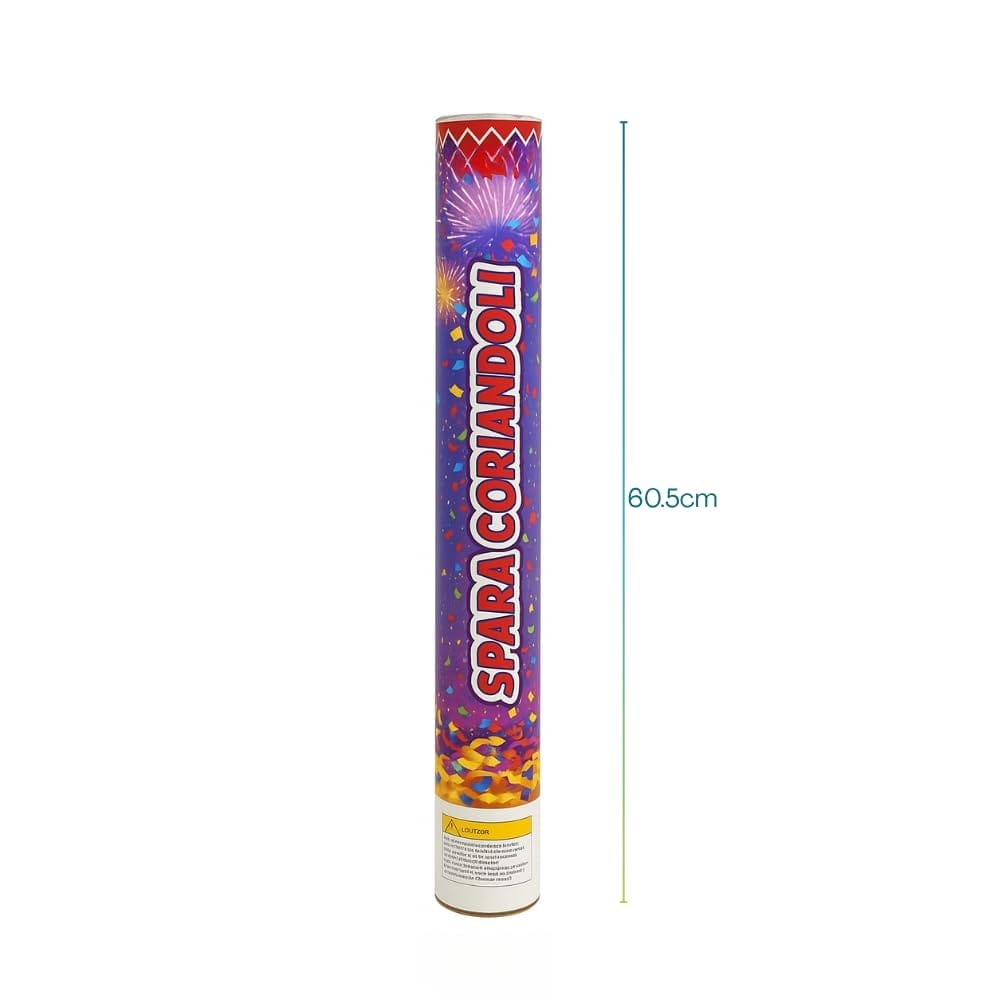 Spara Coriandoli multicolore da 60,5 cm di lunghezza con diametro di 5 cm. Coriandoli di vari colori indispensabili per creare un bellissimo effetto scenografico durante le tue feste: matrimonio, battesimo, cresima, comunione, ecc.