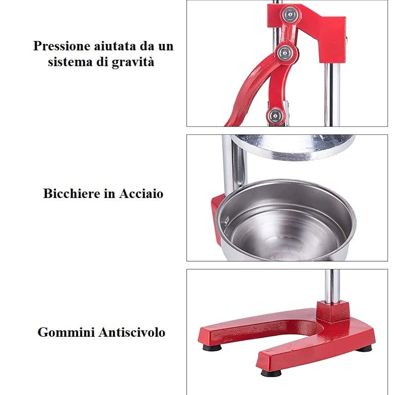 Spremiagrumi a colonna (22x17x39 cm) Rosso - Spremiagrumi a leva manuale in acciaio con piedini antiscivolo e manico ergonomico