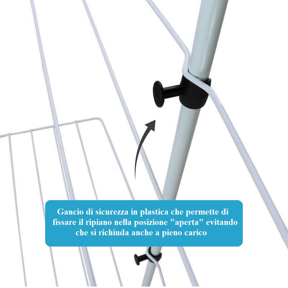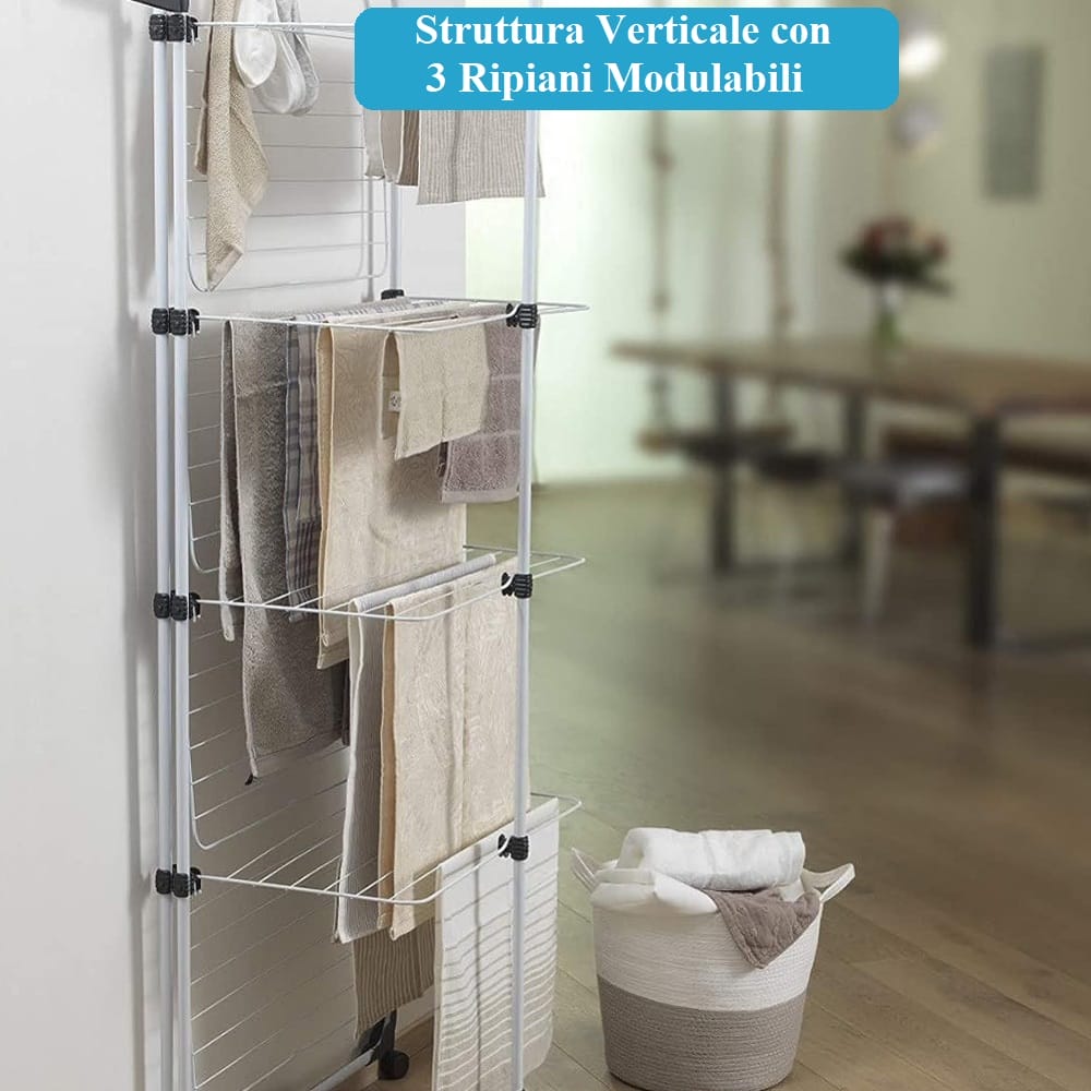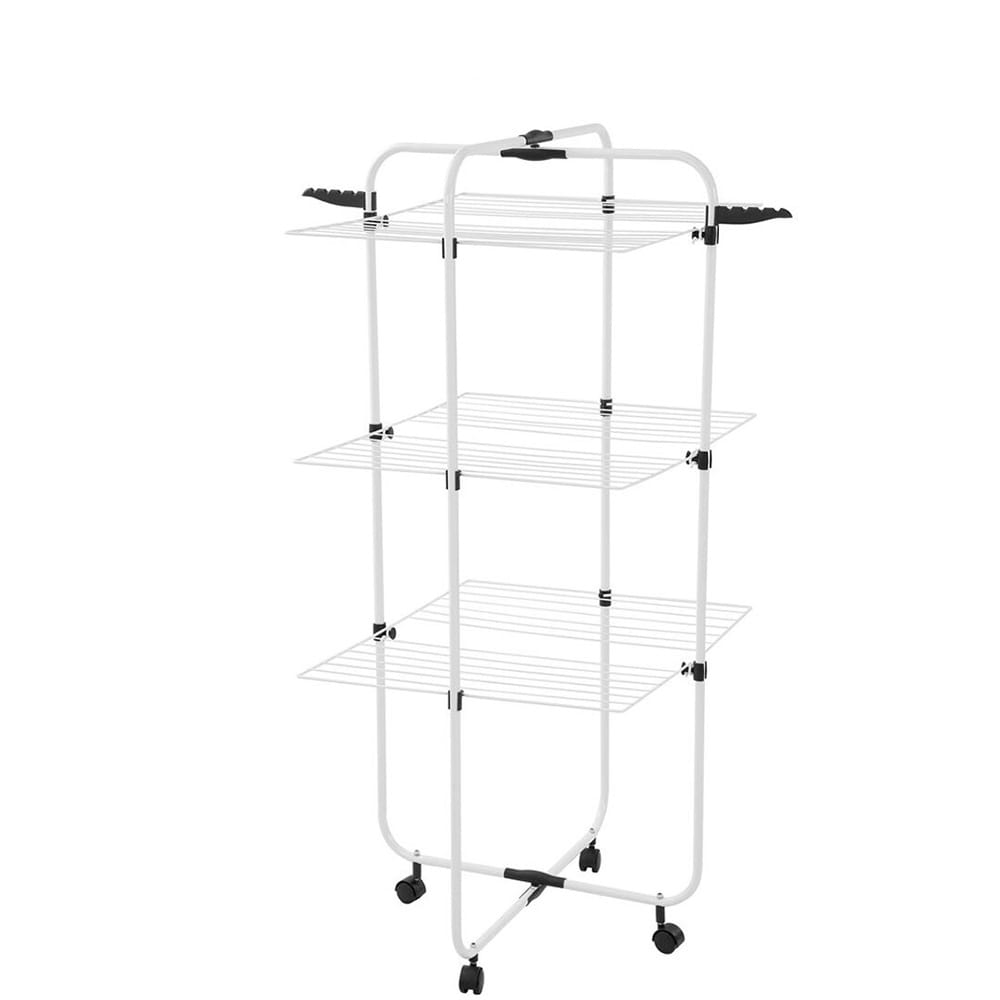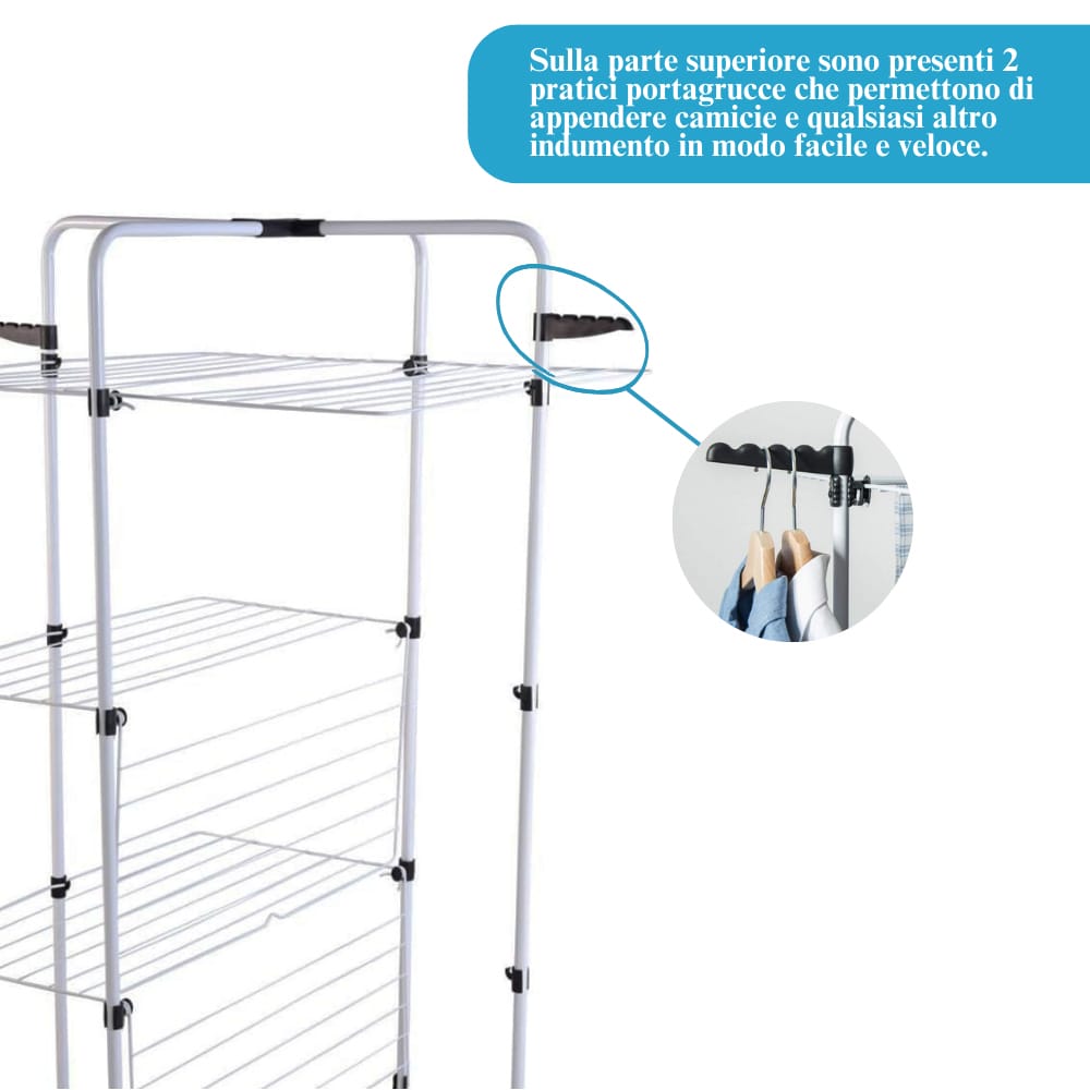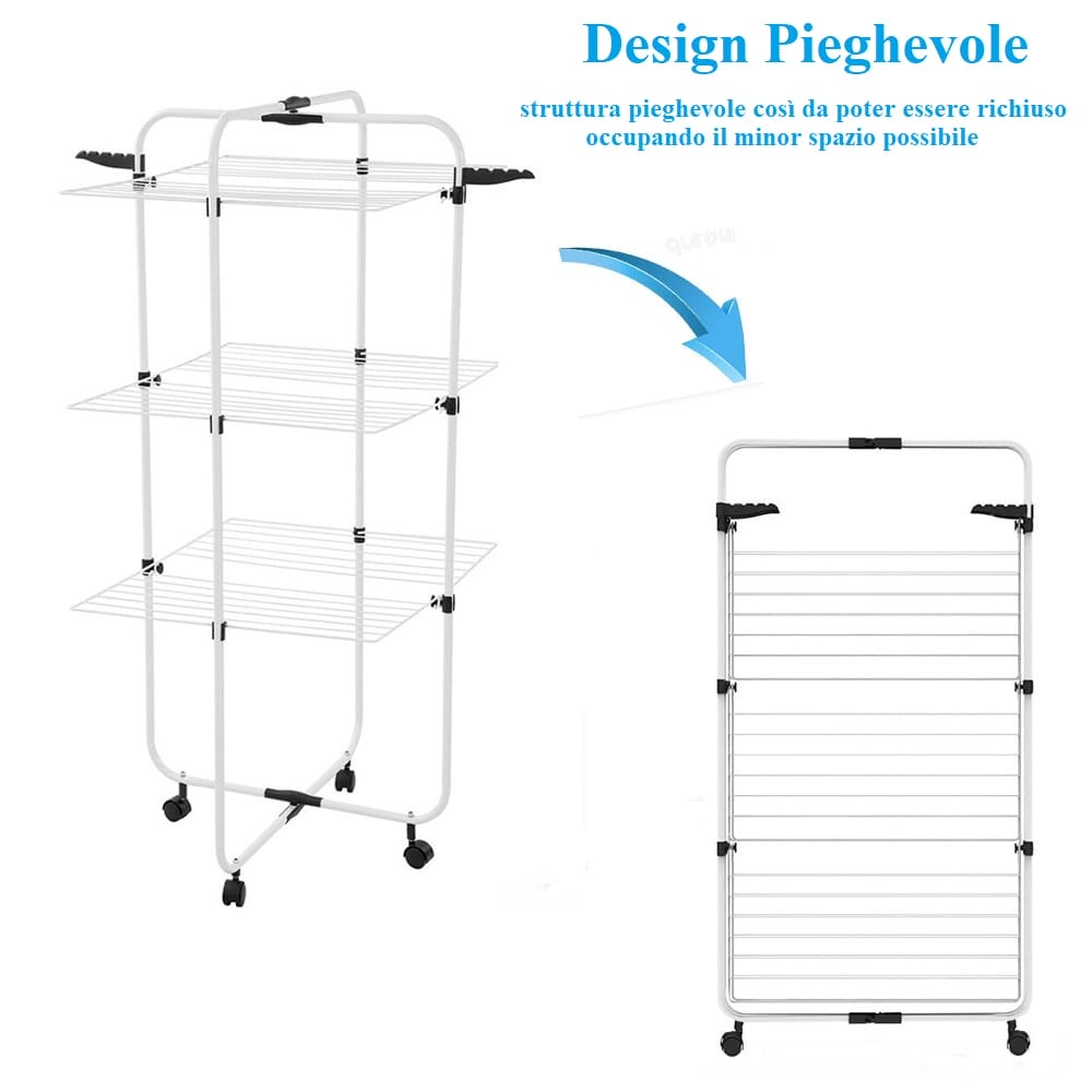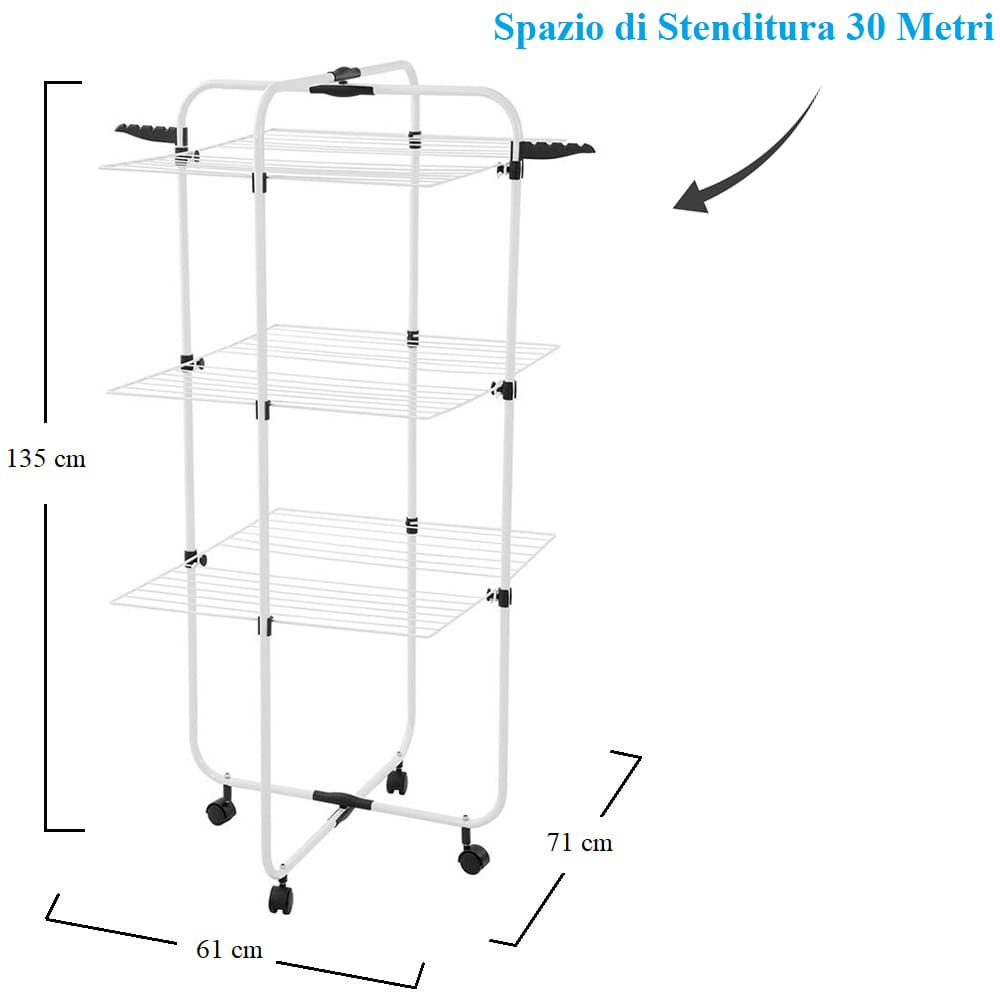 Stendibiancheria a colonna con 3 livelli e struttura pieghevole in metallo con spazio di stenditura pari a 30 Metri - Dimensioni 61x71x135 cm