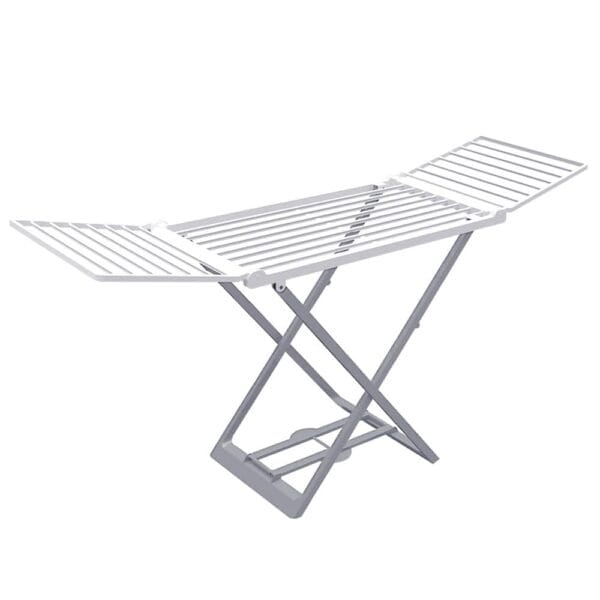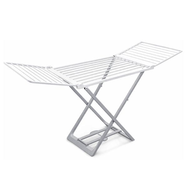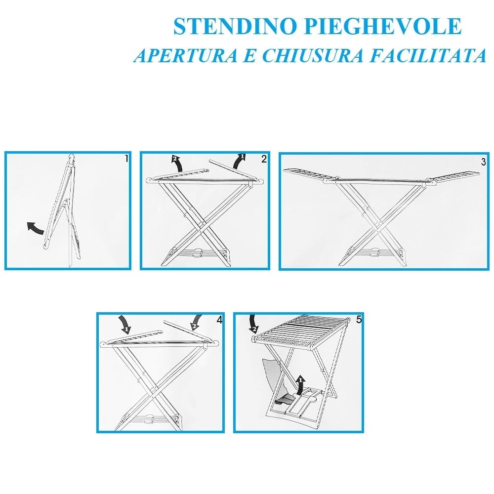Stendibiancheria da balcone richiudibile di colore bianco e grigio - Misura 194x58x108 cm con lunghezza di stenditura 20 metri - Stendino pieghevole e salvaspazio in resina