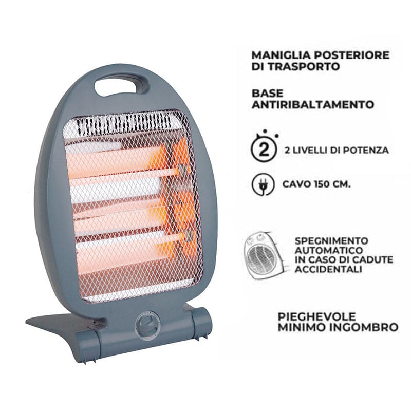Stufetta elettrica Aurora con elementi al Quarzo a due livelli di potenza (400W-800W) - Grigio