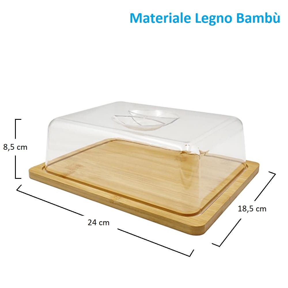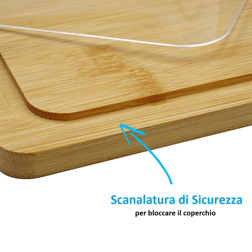 Tagliere in legno di bambù Rettangolare con COPERCHIO trasparente - Misura 24x18,5x8,5 cm