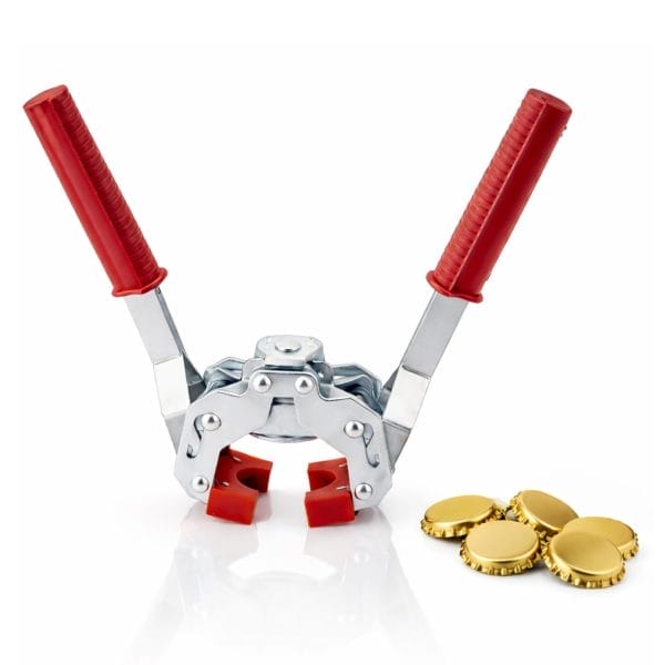 KIT: Tappatrice a due leve per tappi a corona - Capsulatrice per bottiglie con guarnizione in nylon + 100 tappi a corona da 26 mm