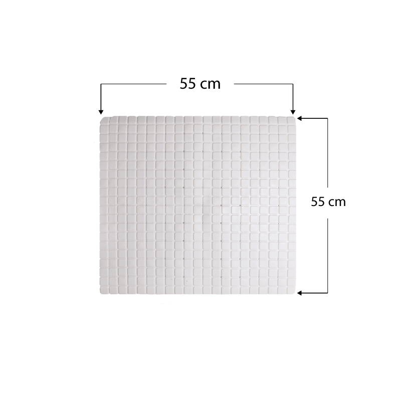 Tappeto doccia antiscivolo in PVC Bianco - Misura 55x55cm - Tappetino antimuffa e antibatterico, con ventose e fori drenaggio ideale per cabina doccia e vasca