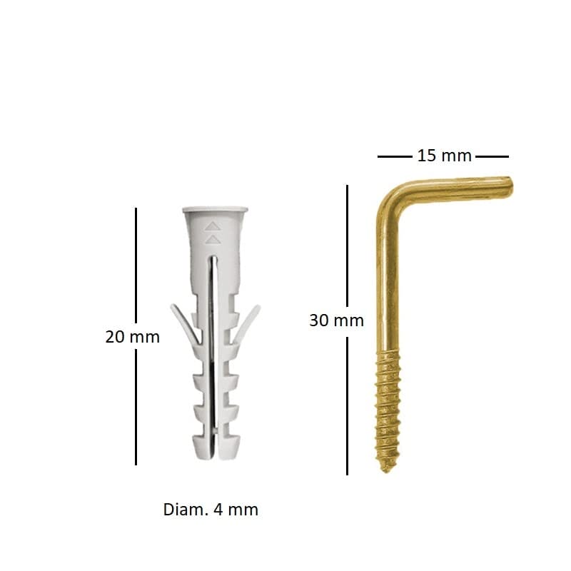 Tasselli con gancio color oro Mis. 4×20 mm Tassello a muro