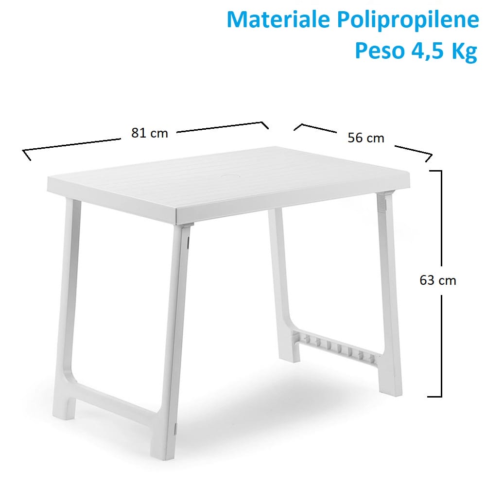 Tavolo rettangolare da giardino in plastica con foro per ombrellone - Misura 81x56x63 cm - Tavolino per esterno con gambe pieghevoli - Bianco