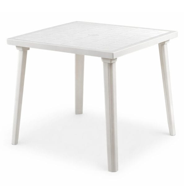 Tavolo da giardino quadrato 80x80 cm in plastica Bianca con foro per ombrellone - Tavolo per 4 persone con gambe removibili