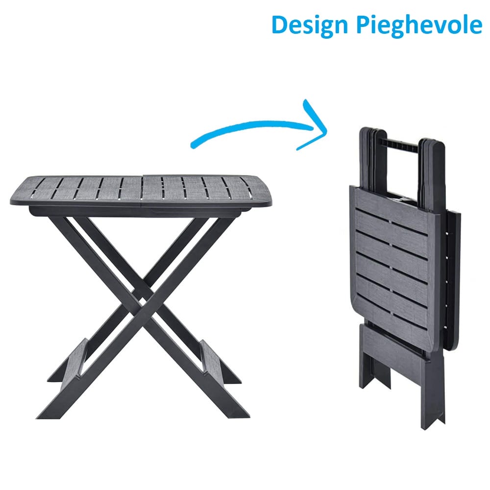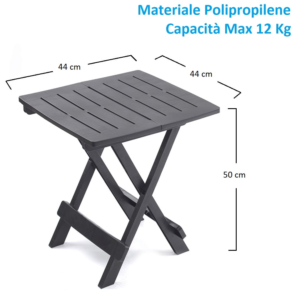 Tavolo quadrato pieghevole da giardino in plastica, formato piccolo - Misura 44x44x50 cm - Tavolino per esterno ed interno - Colore Antracite