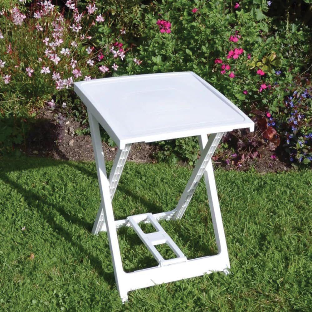 Tavolo pieghevole da esterno in plastica, formato piccolo - Misura 50x47x65 cm - Tavolino Bianco salvaspazio e facile da riporre