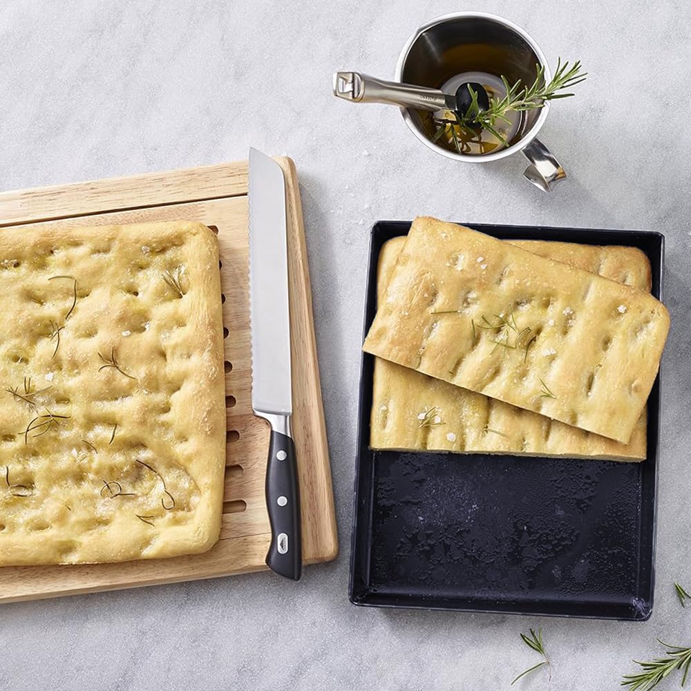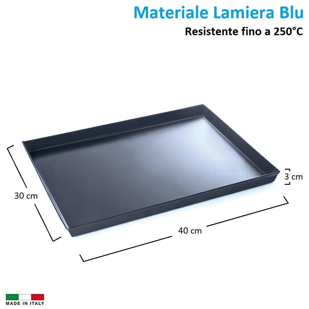 3 Teglie per Pizza in Lamiera Blu 30x40 cm con Bordi alti 3 cm - Teglia rettangolare professionale ideale per Pizza, Focaccia e Dolci