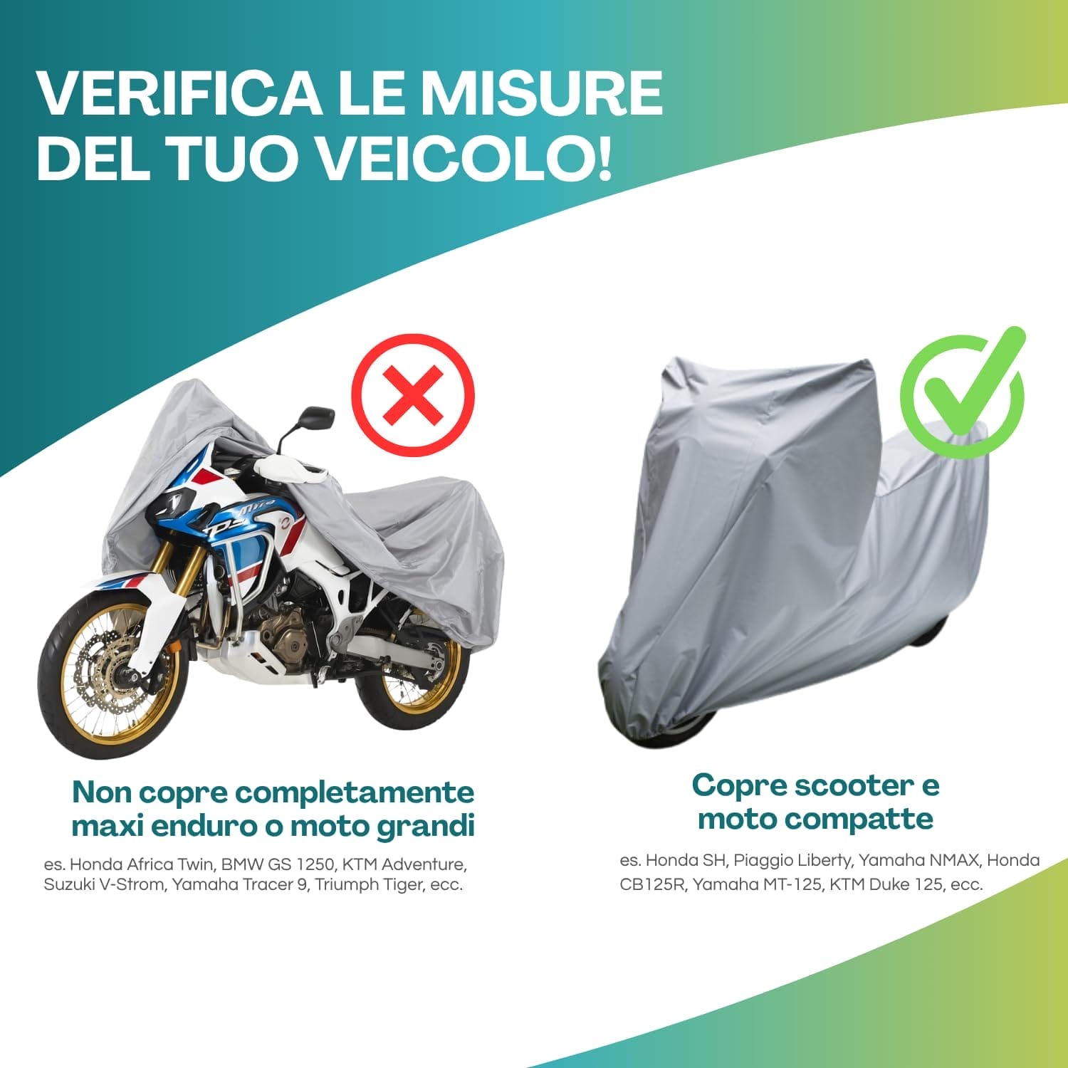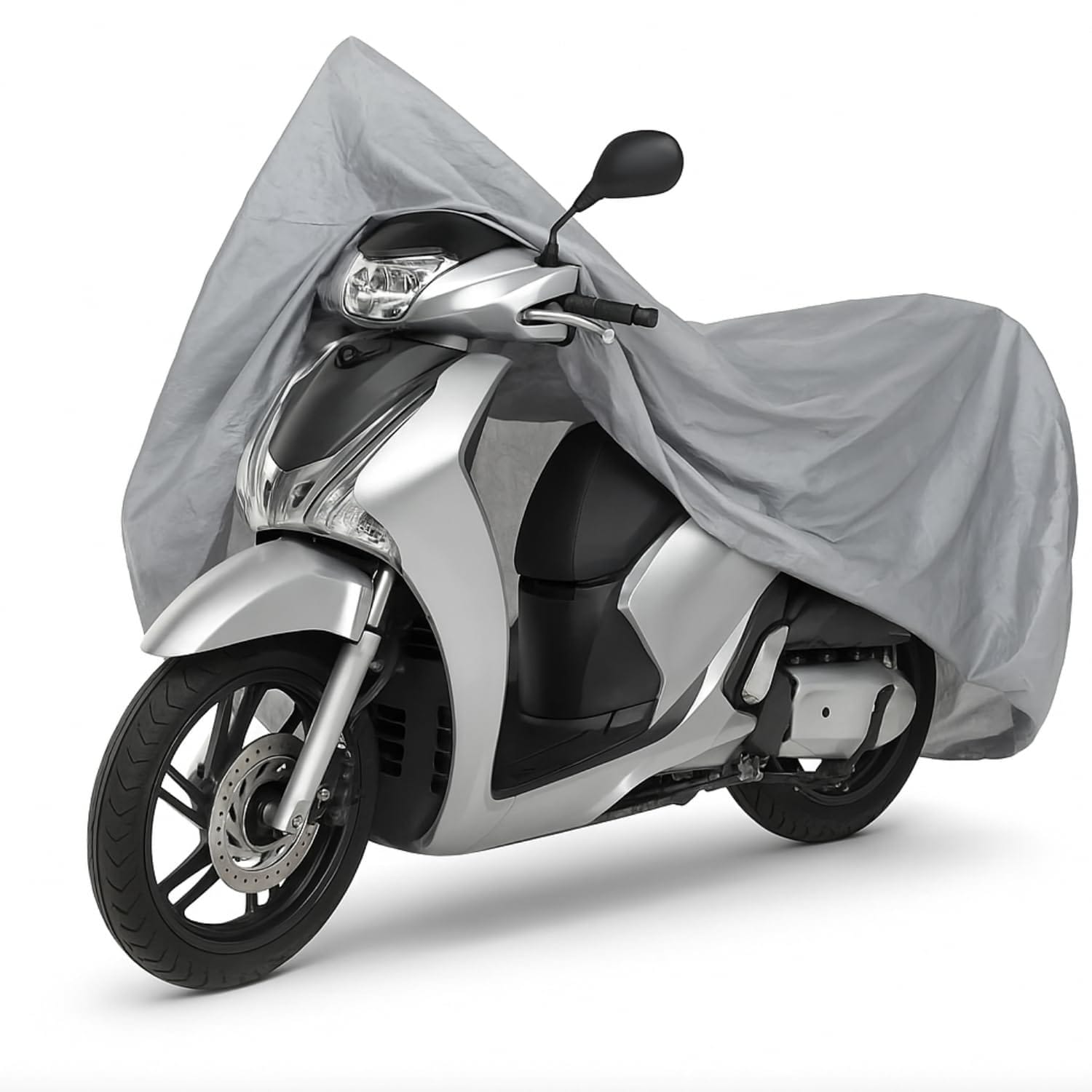 Telo coprimoto da esterno colore Grigio, misura 230x130 cm - Copertura protettiva per moto in tessuto impermeabile, protegge da polvere, pioggia, neve, ghiaccio, raggi UV