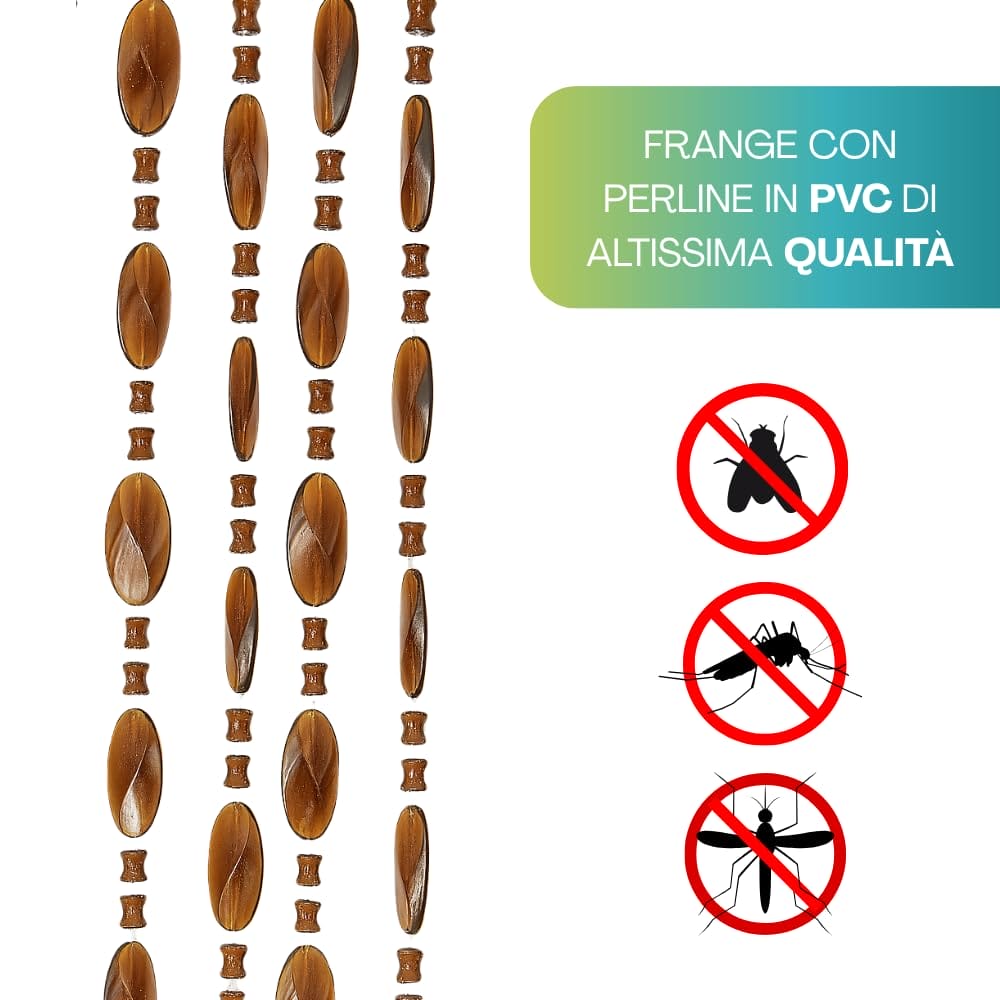 Tenda a perline anti mosche Beige 120x230 cm - Frange con perline in PVC - Zanzariera per insetti