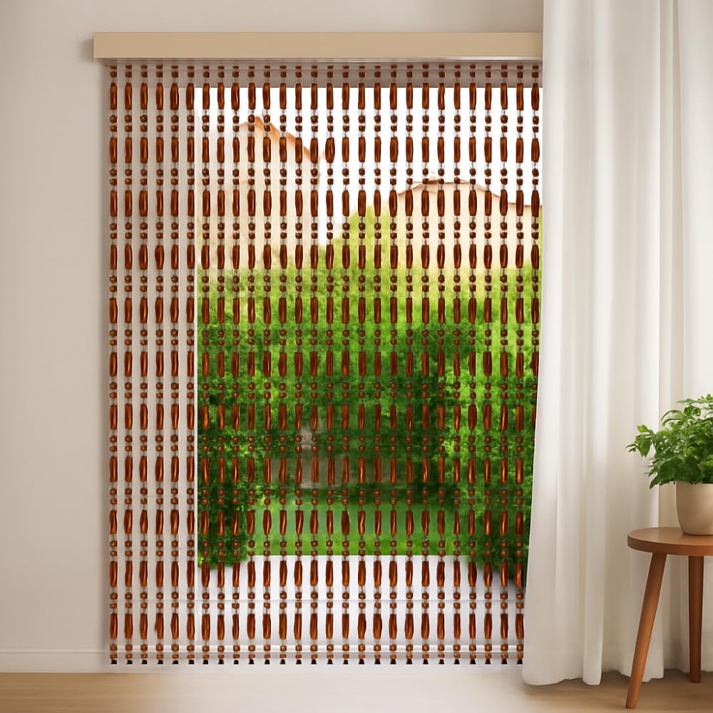 Tenda a perline in PVC per porte e finestre 120×230 cm Beige