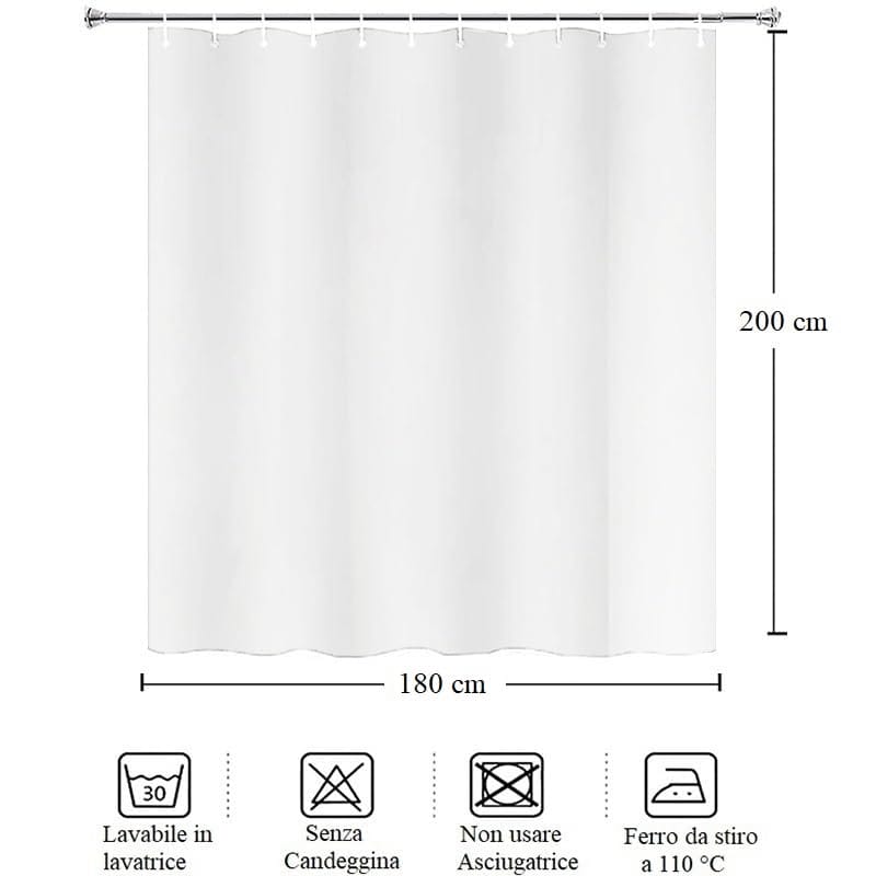 Tenda doccia tessuto Bianco impermeabile 180×200 cm
