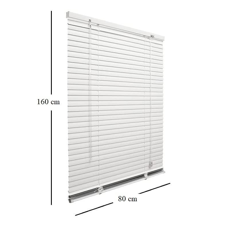 Tenda Veneziana (80x160 cm) in PVC bianca per finestra con lamelle inclinabili - Tenda parasole con fissaggio a muro