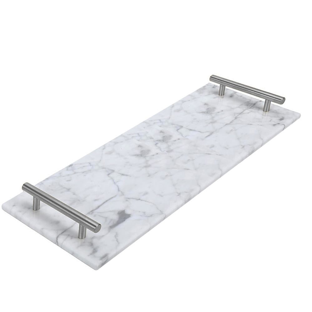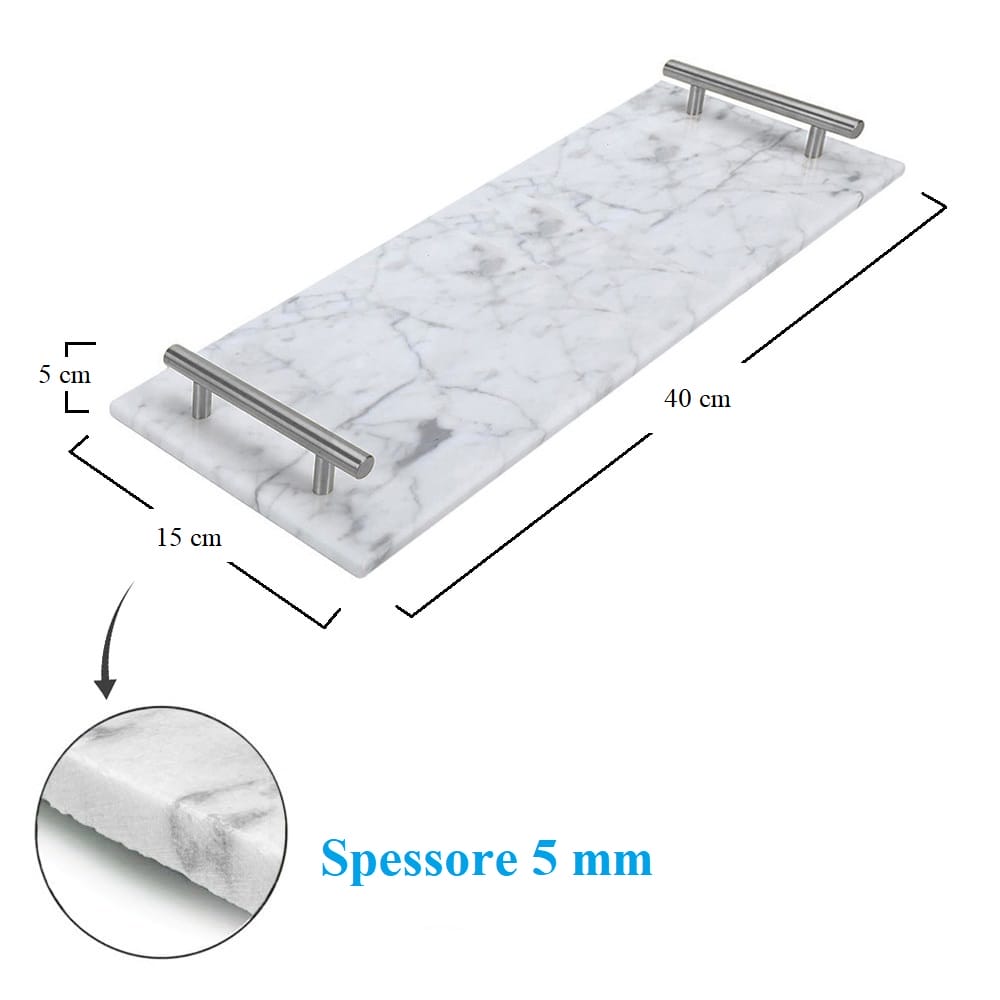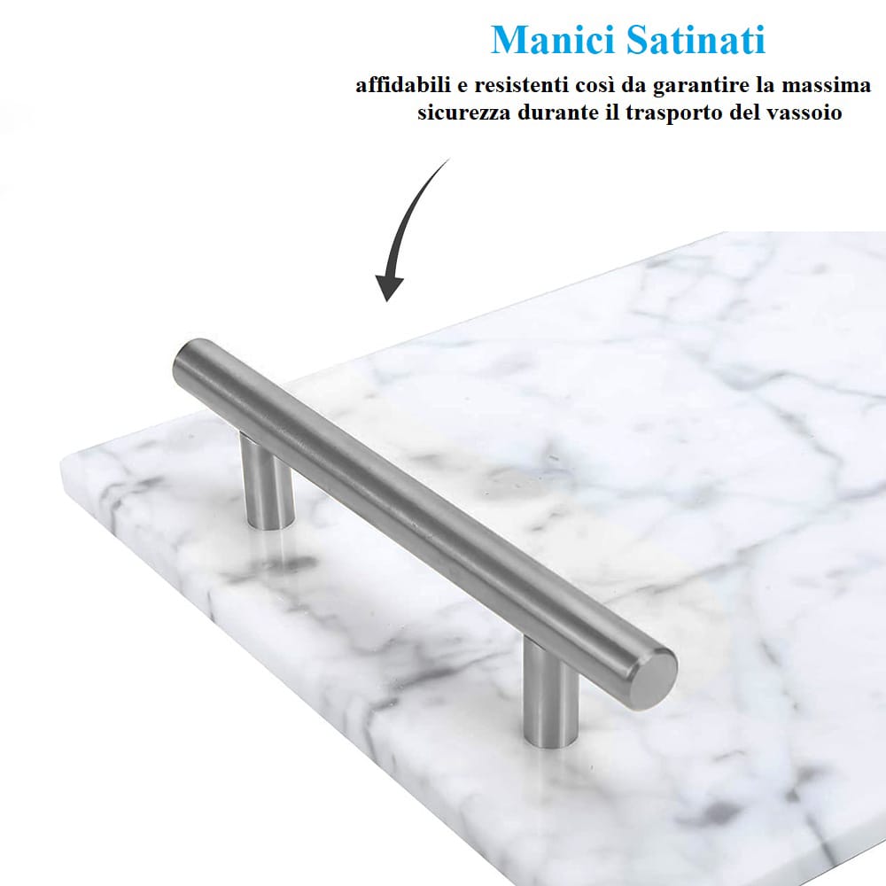 - TOP QUALITY - i piatti sono realizzati in marmo naturale, materiale resistente e facile da pulire il che li rende una buona scelta per qualsiasi casa e attività. I due manici in metallo sono affidabili e resistenti così da garantire la massima sicurezza durante il trasporto degli alimenti.