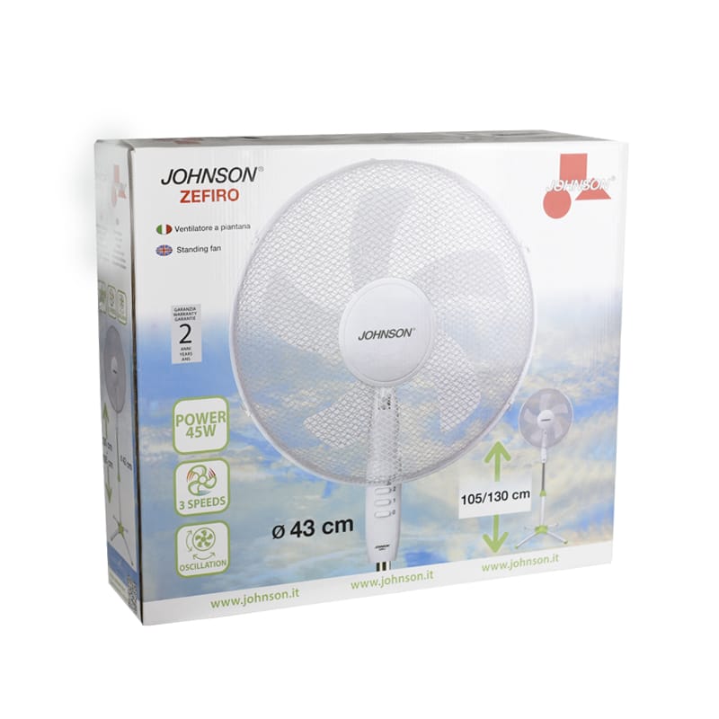 Ventilatore Johnson ZEFIRO a piantana con 5 pale regolabili a 3 velocità - Diametro 43 cm con altezza regolabile fino a 130 cm di altezza